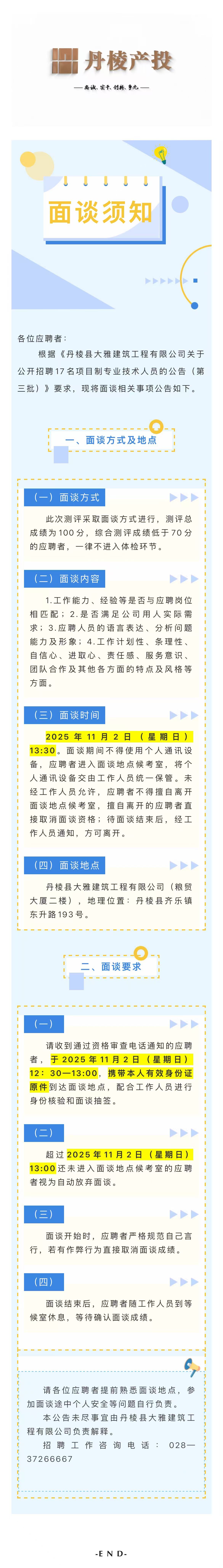 丹棱縣大雅建筑工程有限公司關(guān)于公開(kāi)招聘17名項(xiàng)目制專(zhuān)業(yè)技術(shù)人員的面談須知(第三批)